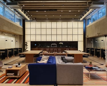 Ce projet de coworking rénove un cadre historique en un espace de travail moderne, lumineux et hautement esthétique. Il marie l'élégance classique, visible dans l'accueil, avec des ambiances contemporaines et conviviales (La cafeteria, lounges, salle événementielle). Le design privilégie la chaleur du bois, la lumière naturelle et un mobilier confortable, créant un lieu de vie dynamique, adapté à l'esprit communautaire.