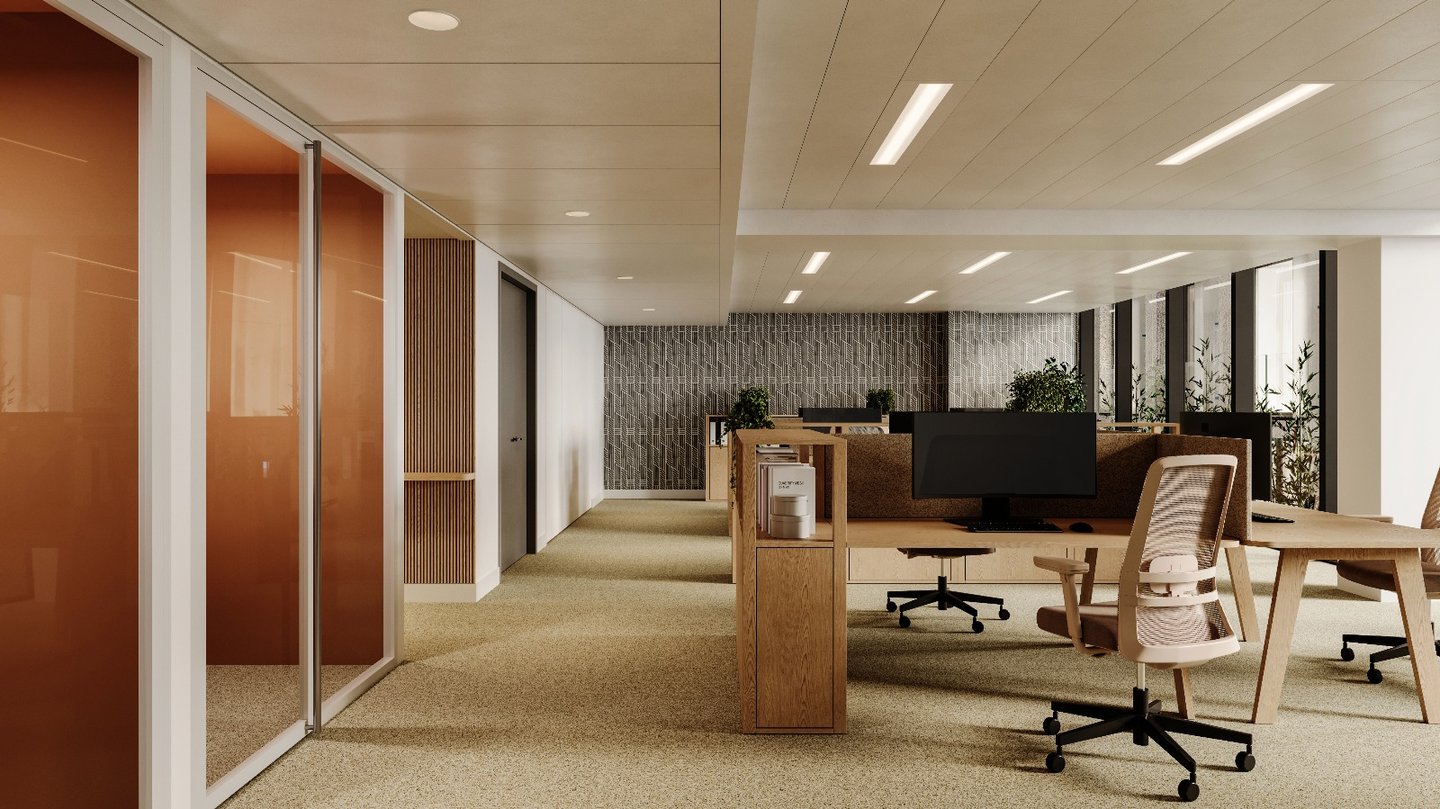 Ces bureaux atelier de incarnent une vision contemporaine et chaleureuse de l'espace de travail collaboratif, privilégiant une palette matérielle dominée par le bois blond et des tonalités terracotta.