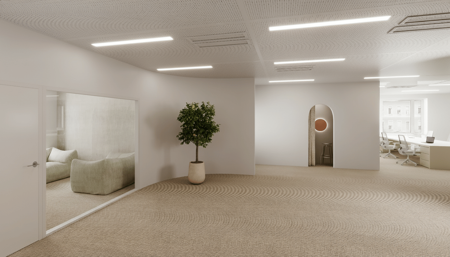 Ce projet illustre une approche holistique du bien-être au travail où pureté visuelle, acoustique maîtrisée et intégration de la nature créent un écosystème professionnel serein et performant.